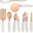 - Cooper plated stainless steel gadgets with comfortable, soft-touch, good grip, non-slip handles that absorb pressure and make it easier on your hands.